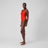 Damen Einfarbiger Badeanzug mit Rundhalsausschnitt und Mesh Rot - XS
