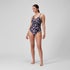 Damen Shaping-Badeanzug mit bedruckten Trägern Schwarz/Lila - 36