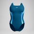 Formender bedruckter Splice-Badeanzug Dunkelpetrol/Grün für Damen - 32