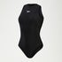 Wir haben unserem klassischen Hydrasuit mit auffälligem weißen Branding ein stylisches Upgrade verpasst. Er behält seine kultige Silhouette mit dem hochgeschlossenen Schnitt und dem Reißverschluss auf der Rückseite für volle Bedeckung bei und ist perfekt für Fitness- und Trainingseinheiten. Der hohe Beinschnitt sorgt für maximale Flexibilität beim Workout. Ein gefütterter Unterbrustbereich sorgt für leichten Halt, damit du dich ganz auf dein Schwimmtraining konzentrieren kannst. Unser EnduraFlex Material ist ideal für regelmäßiges Schwimmen. Es bietet eine höhere Chlorbeständigkeit als herkömmliche Badebekleidung und sitzt dank CREORA® HighClo™ länger wie neu. Darüber hinaus werden Nylongarne im EnduraFlex-Gewebe zu 100 % aus Abfällen hergestellt, wie zum Beispiel aus Abfälle aus Fabriken.