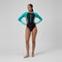 Langärmliger Badeanzug in Colourblock-Optik Schwarz/Grün für Damen
