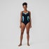 LunaElustre Formender bedruckter Badeanzug Marineblau/Grün für Damen
